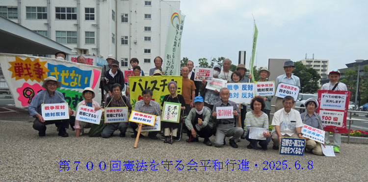 〔今年も23.9.21 エアフェスタの廃止申し入れ〕 今年も危険なエアフェスタ浜松が10月に行われるとの報に接し、今年も「憲法を守る会」と「社民党浜松総支部」共同で9月21日航空自衛隊浜松基地を訪れ、恒久的廃止要望書を提出しました。 全文詳細は、「私たちの主張」タグをクリックしてご覧下さい。 ![]() ![]() 〔22.9.16 エアフェスタの恒久的廃止を申し入れ〕 二年間コロナ感染拡大のため中止になっていた浜松基地航空祭(エアフェスタ)は、今年は行われるとの発表を受け、9月16日、 この催しの恒久中止を求める請願書を自衛隊浜松基地・熊谷三郎司令に提出しました。請願書全文は「私たちの主張」タグをクリックしてご覧下さい。 ![]() 【2022年度総会が開催されました】 2022年度の総会が、6月12日午後2時より遠州教会集会室で開催され、2021年度の活動記録、活動総括、2021年度会計決算報告、監査報告、2022年度活動計画、2022年度会計予算等、執行部提出議案は、一部修正の後、すべて承認されました。引き続き会員の皆様のご協力をお願い申し上げます。 〔12/21 川勝平太 静岡県知事へ要望書を送りました〕 川勝知事が今年秋の静岡護国神社例大祭に公用車を使って出席し、玉串拝礼を行っていたことが、報道で報じられました。これは政教分離を謳った憲法第20条に違反する可能性は極めて濃厚です。当会は、これを看過すべきではないと判断し、本日以下添付の要請書を配達証明付き郵便で送付しました。以下に添付します。これに、知事がどう反応するか来年の例大祭は、当会は出向き確認する予定です。 ![]() 〔当会常任委員高橋博氏ご逝去のお知らせ〕 ★かねて呼吸器の病のため入院されていた常任委員高橋博氏が2021年9月17日、お亡くなりになりました(88才)。高橋氏は憲法を守る会発足当時から、会員としてまた代表委員として、献身的に多大な貢献をされました。心から感謝を申し上げるとともに、深く哀悼の意を表します。 〔高橋博氏の在りし日のお姿は、このページの中程、2017年12月18日付け中日新聞「平和の俳句」に載っております〕 -------------------------------------------------------------------------------------- 〔今年もエアフェスタの恒久的廃止を自衛隊浜松基地に申し入れました〕 この件、役員会で5月頃から討議され、今年も中止を申し入れする事にしていましたが、昨年に引き続き今年も新型コロナウイルス感染拡大を理由に、中止となることが、自衛隊浜松航空基地ホームページで発表されてました。中止理由が、私達の主張と異なることは残念ですが、ともあれ今年も中止となり、良かったと思います。これを機に、この様な催し(国民の印象操作)は恒久的に中止する事を求め、2021年9月28日、航空自衛隊浜松基地・熊谷三郎司令に請願書を提出しました。私たちの税金で行われているこの催しに費やされるお金を、これからは、コロナ対策や貧困対策等に回すこともあわせて求めて行きます。 ![]() |