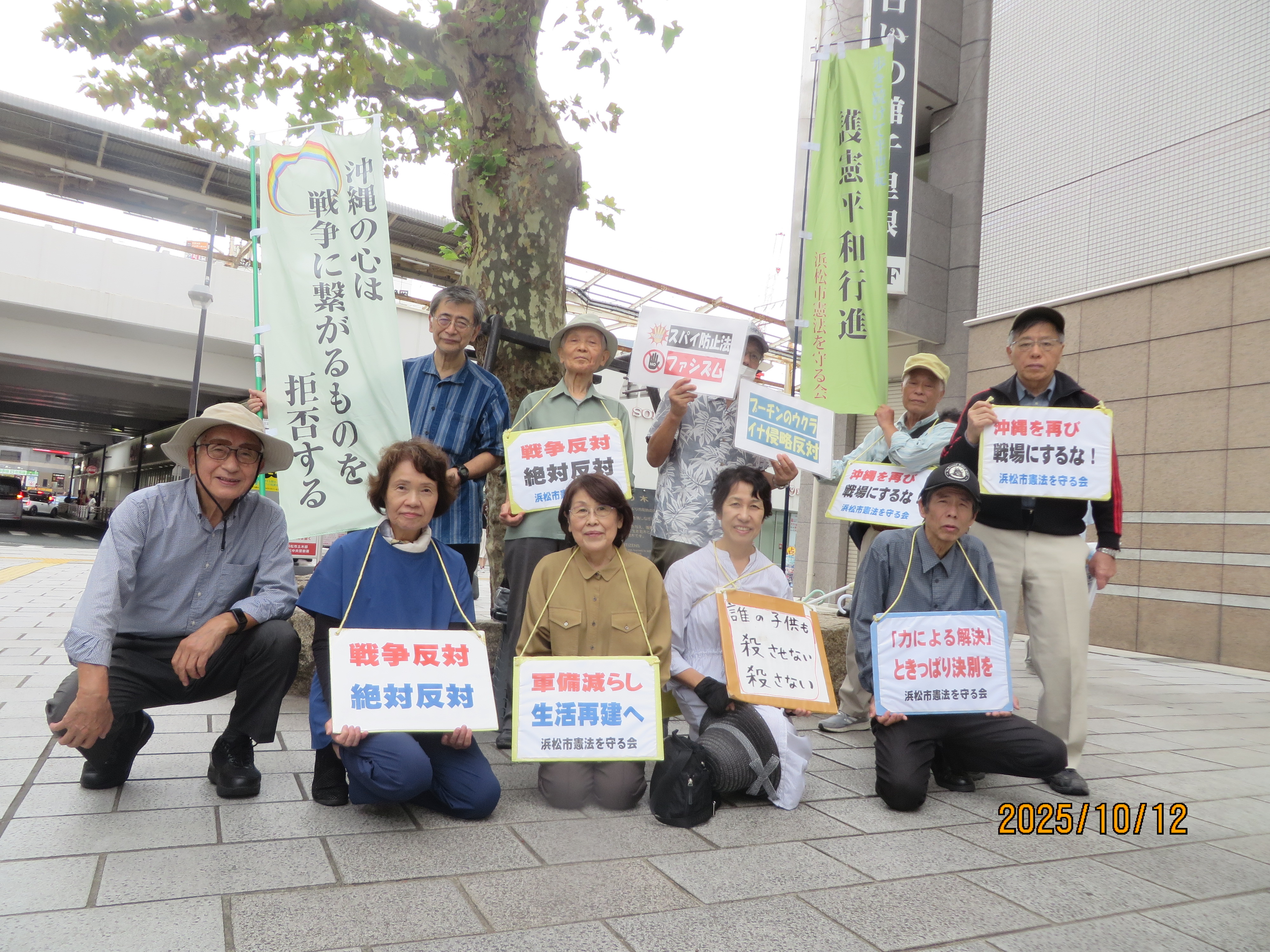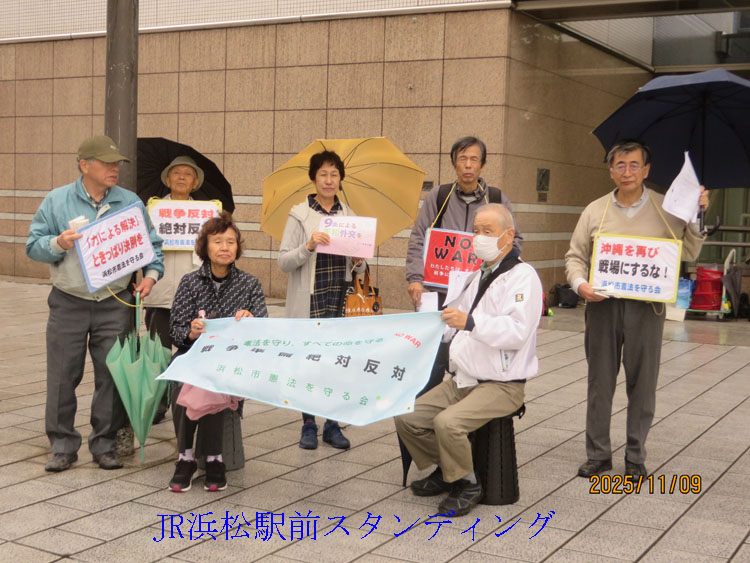 9月からは、毎月第2日曜日13時から、JR浜松駅北口広場、プラタナスの木の下 でスタンディングという形で、私たちの護憲平和の思を伝えてゆきます。